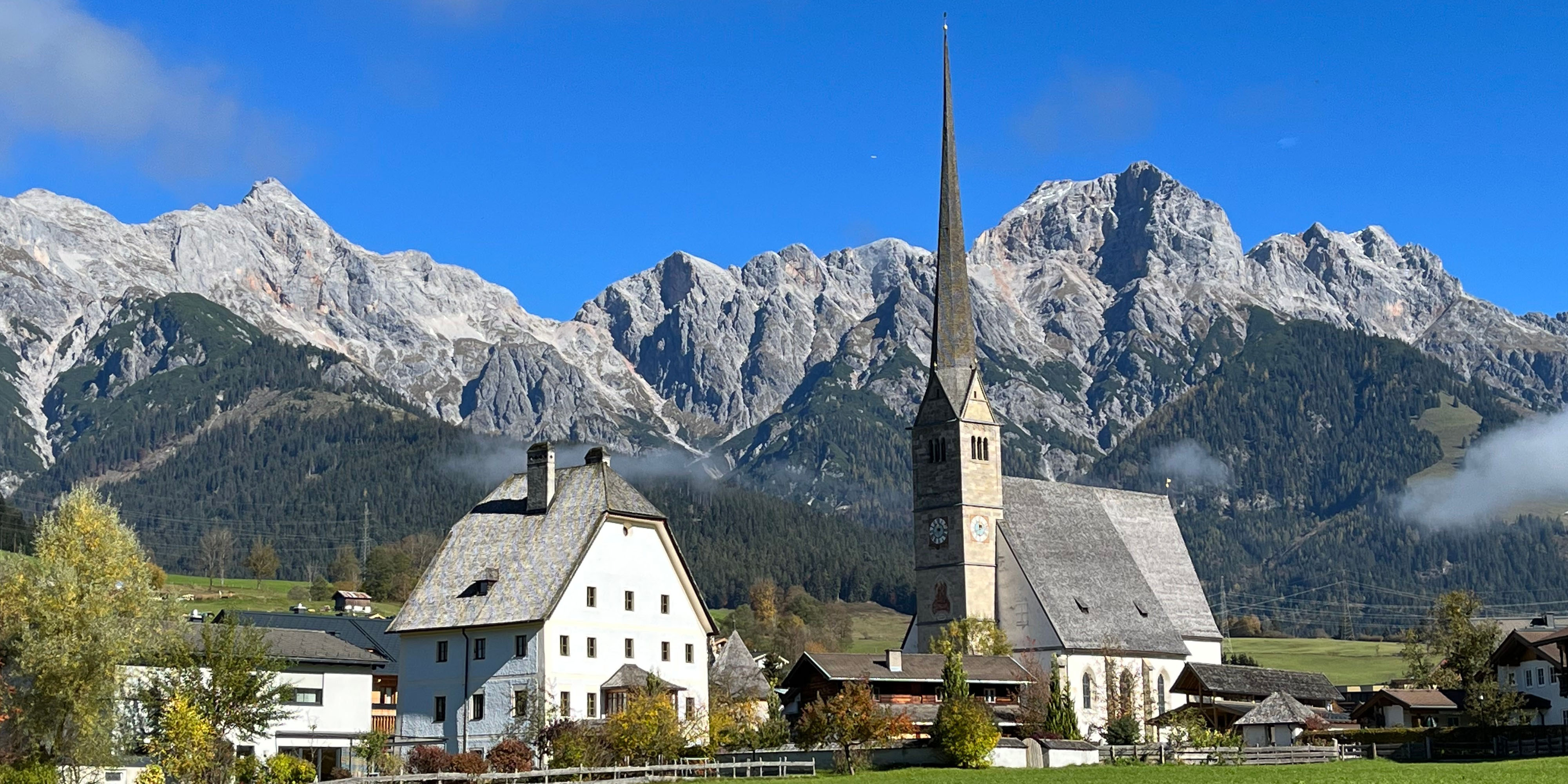 Vom Wohn- Esszimmer und über das große Schlafzimmer haben Sie Zugang zur Loggia: Genießen Sie von dort den atemberaubenden Blick auf den Hochkönig und die umliegende Almlandschaft. Im Untergeschoss wartet das Hallenbad des Hauses mit Duschen sowie ein Tischtenniskeller.